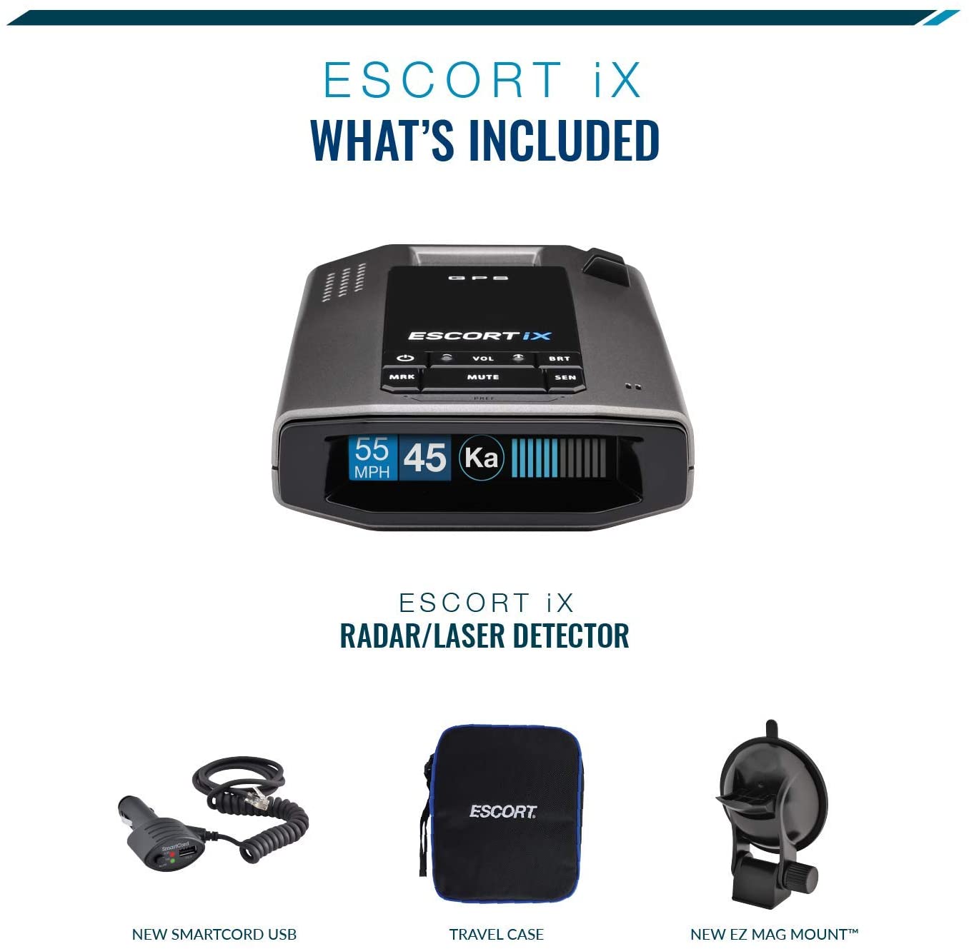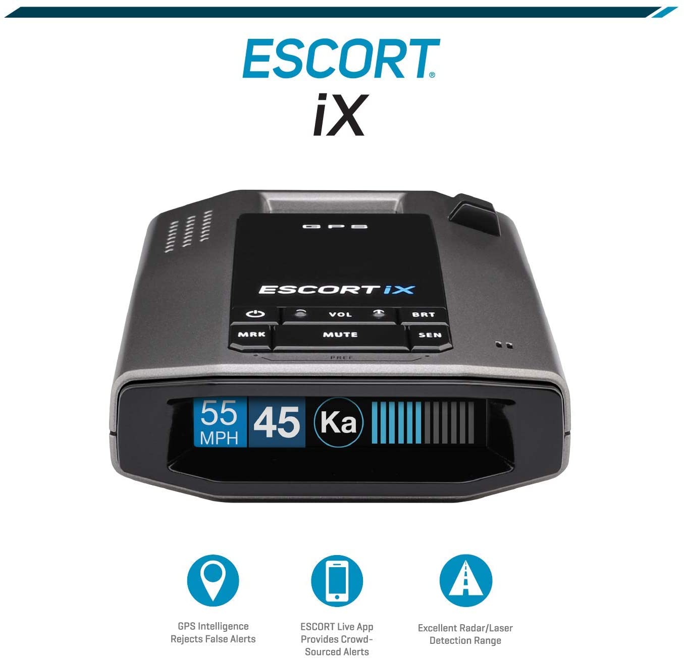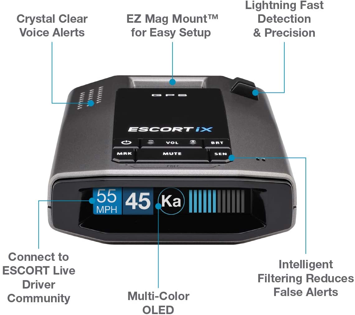 • The Escort iX is an intelligent, high performing long rang radar laser detector that possesses early warning and fast response on all radar bands. These radar bands include conventional and instant-on X-band, K-band, SuperWide Ka-band and POP mode
